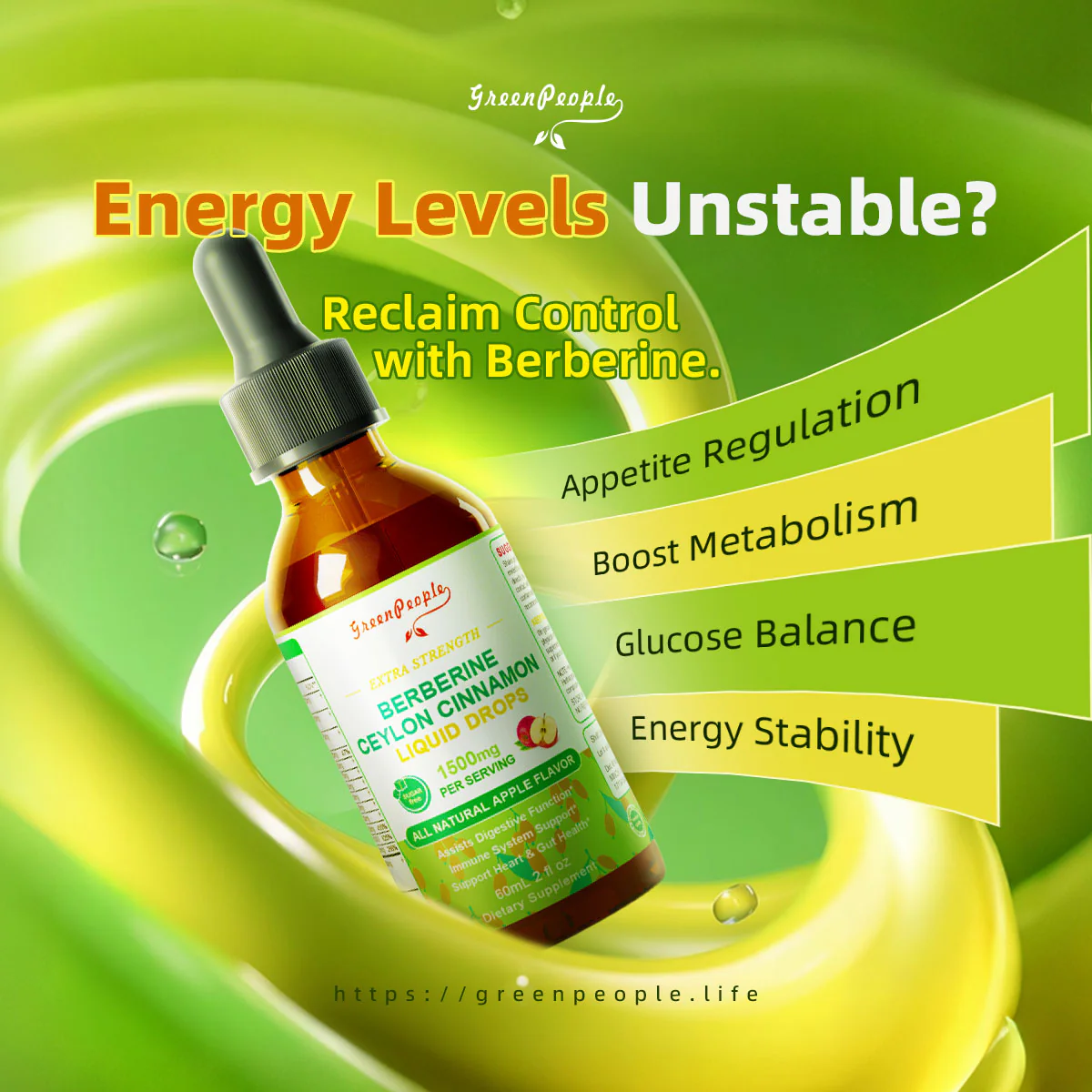 GREENPEOPLE (2 Packs) Berberine Liquid Supplement with Ceylon Cinnamon Berberine Drops 1500mg