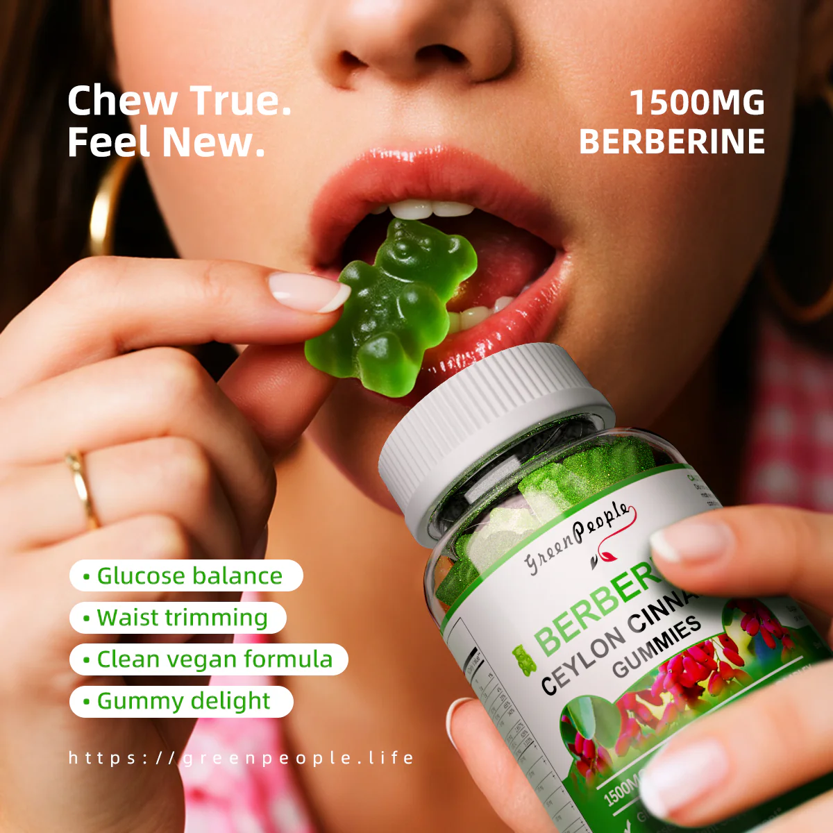 GreenPeople Apple Flavor Berberine Ceylon Cinnamon Gummies