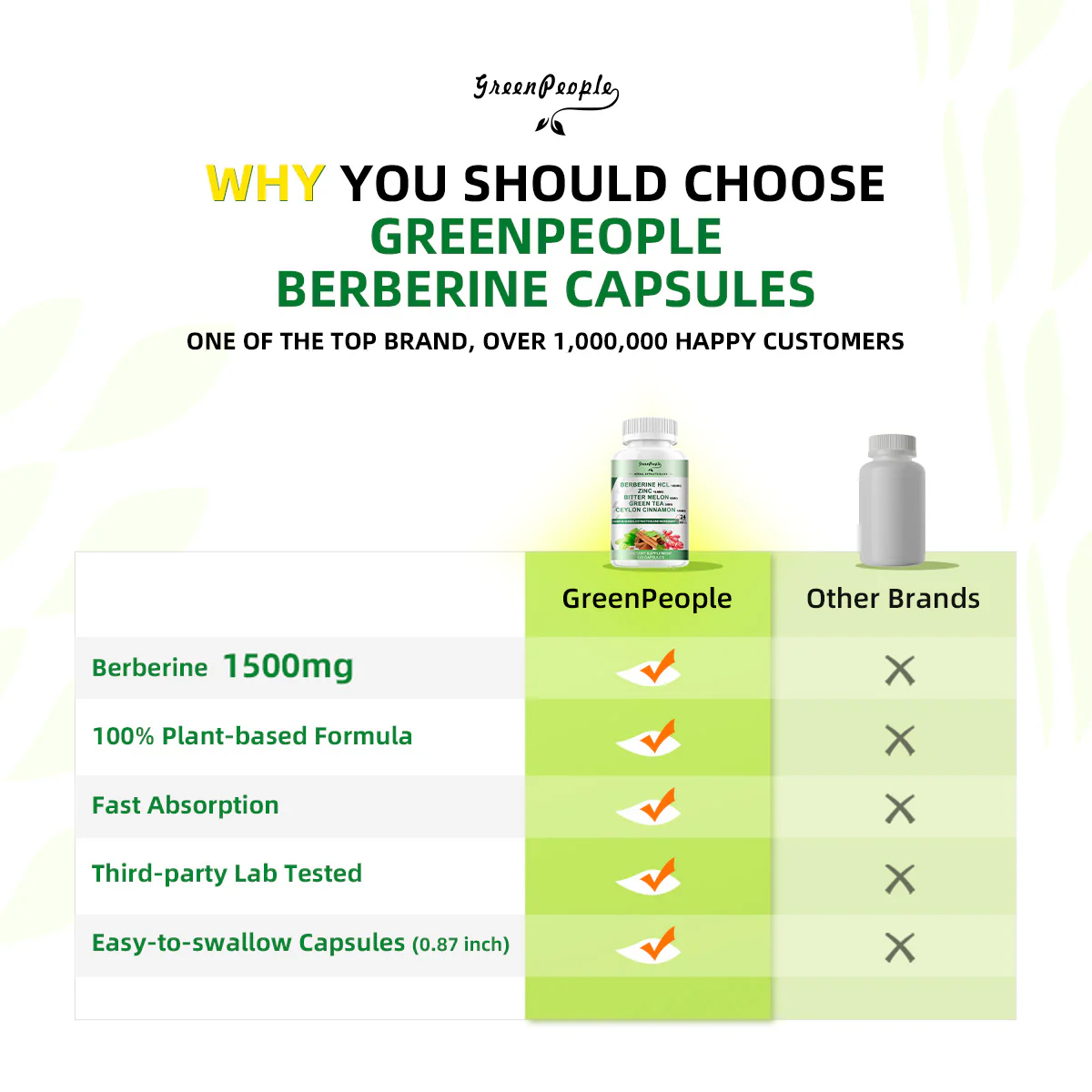 GreenPeople Berberine Supplement Capsules with Bitter Melon, Chromium, Zinc & Other Natural Herbs